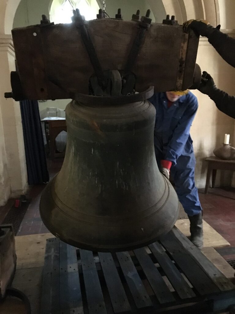 Over the years, the 6 historic bells of All Saints’ East Garston have been rung to all parishioners to Sunday worship, for weddings, funerals, and baptisms, as well as marking events and historic anniversaries such as the end of the World Wars. Throughout 2014 – 2019 we rang muffled bells as a mark of respect on the 100th anniversary of the death of each man named on the village war memorial, who died in service in WWI. The bells continued to be rung by our small but enthusiastic band of ringers, but the time had come to carry out a major restoration project to ensure that the bells could continue to be rung for many years to come. The bells had last been rehung in the late 1800s and had only general maintenance since. The treble (smallest) was cracked and had lost its beautiful ringing sound and was also close to falling apart, so the current ringers decided to ask permission from the PCC to obtain quotations to have the bells restored and the treble mended or replaced. The PCC after raising no objections then had to approach the Diocese for a Faculty. Once the Faculty had been obtained the ringers requested quotes from 2 reputable bell hanging firms. Both companies came and inspected the bells, and both instructed the ringers to cease ringing the treble until it had been repaired or replaced. After lengthy discussions it was decided that the preferred option was to use Whites of Appleton, not only were they the most cost effective they were a relatively local firm which had carried out the last restoration. The total needed was £46563k, this was to include work on the small Sanctus bell (not included in the ring of 6) & the creation of a new trap-way below the bells to enable to bells to be removed. This total could be reduced if local help with transportation and general labour could be obtained.