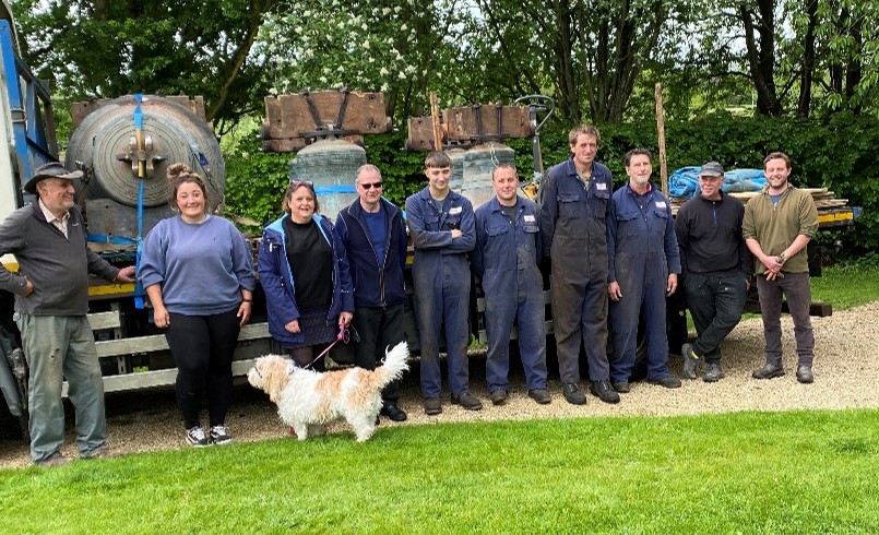 In the Spring of 2020, there was a plan to launch a fund-raising campaign to raise the necessary funds, there was to be a presentation at the AGM of the Parish Council but unfortunately COVID put the country into lockdown and the official launch never took place. However not to be deterred fundraising began in earnest in the latter part of the year. By the end of 2021 there was enough money raised for the work was scheduled to start in May 2022. With the help of local ringers, the bells were removed from the tower during the week commencing 16th May. Steel beams had been fitted in the bell chamber to allow all the bells to be hoisted from their pits and gently lowered down into the ringing chamber, guided by ropes to the trapdoor in the centre of the chamber and then winched down on the floor of the Chancel. The bells were then displayed in the church over the weekend of 21st & 22nd of May to enable people to view the bells that hadn’t been seen out of the bell chamber since the last restoration more than 4 generations ago. On Tuesday 24th May the bells were removed from the church by the volunteer work force which consisted of local ringers, the lads from PJS Agricultural Services and lads from the Manor who used plywood planks over the gravel path in the churchyard to the lychgate, after which they loaded on the lorry and transported to the workshop in Appleton by Jim & Joanna Bracey who had kindly offered their services.